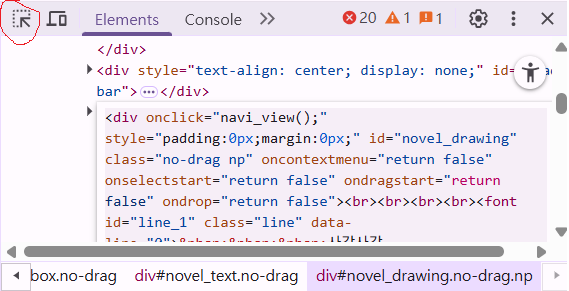 之後點擊檢查視窗左上角的元素檢查器,如下圖