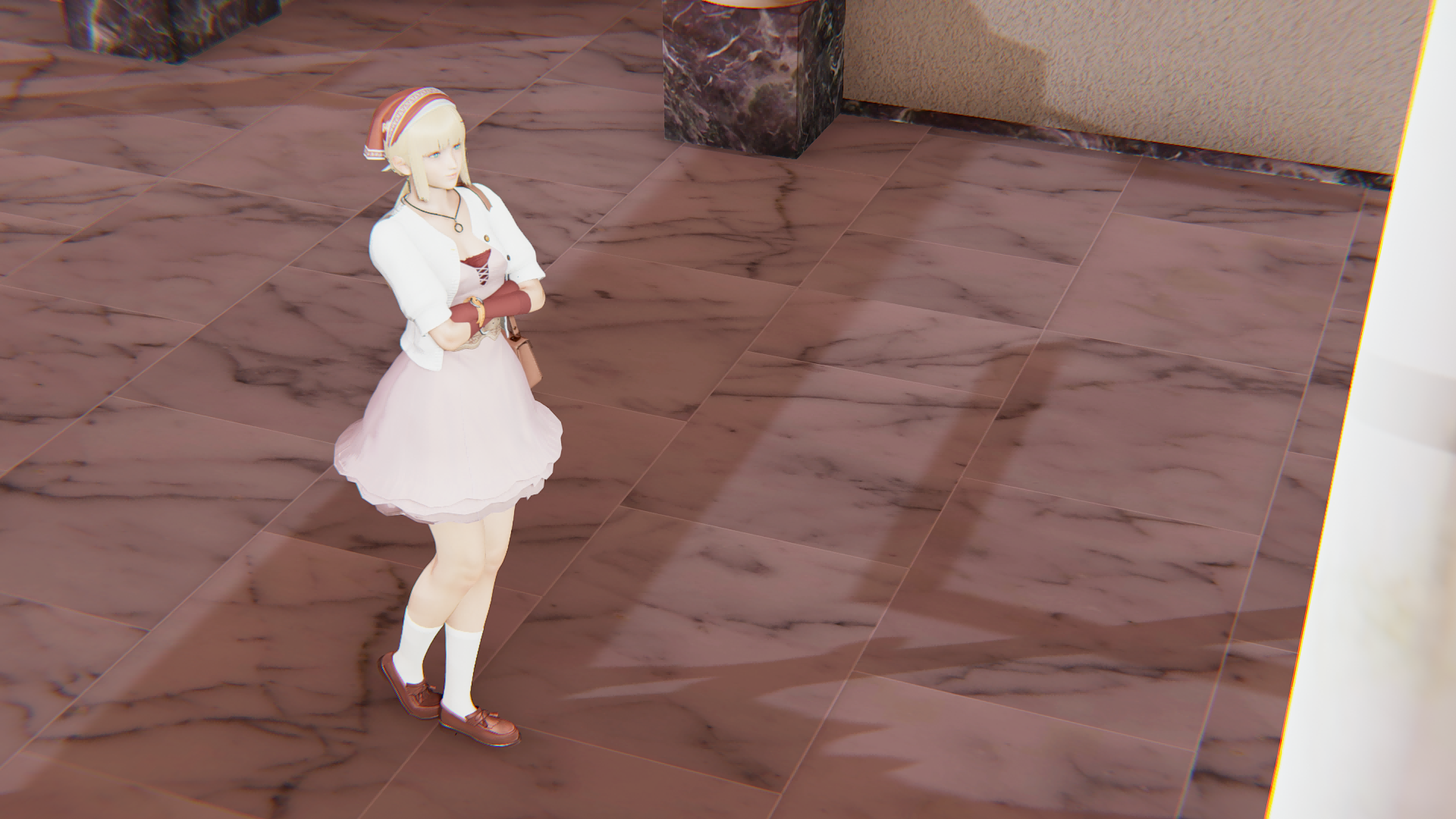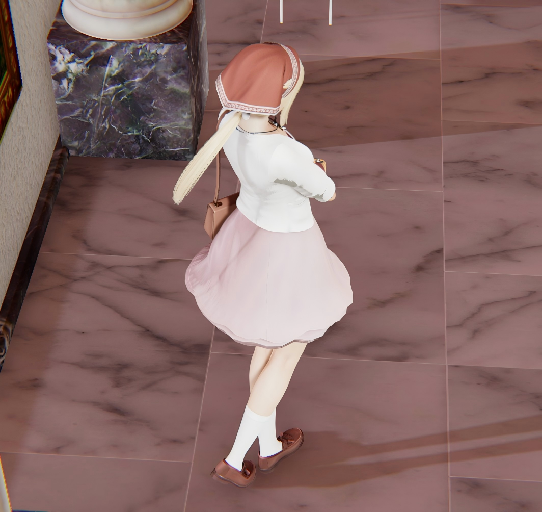 毕竟白丝还是得配带跟的鞋子,芙兰的mod库里刚好有些不错的平底的皮鞋,裙子比较短的话配平底的鞋子袜子还是不能太长了,脚占身高的比例低了,露出多一点腿上的肌肤能够使整体的颜色更协调。