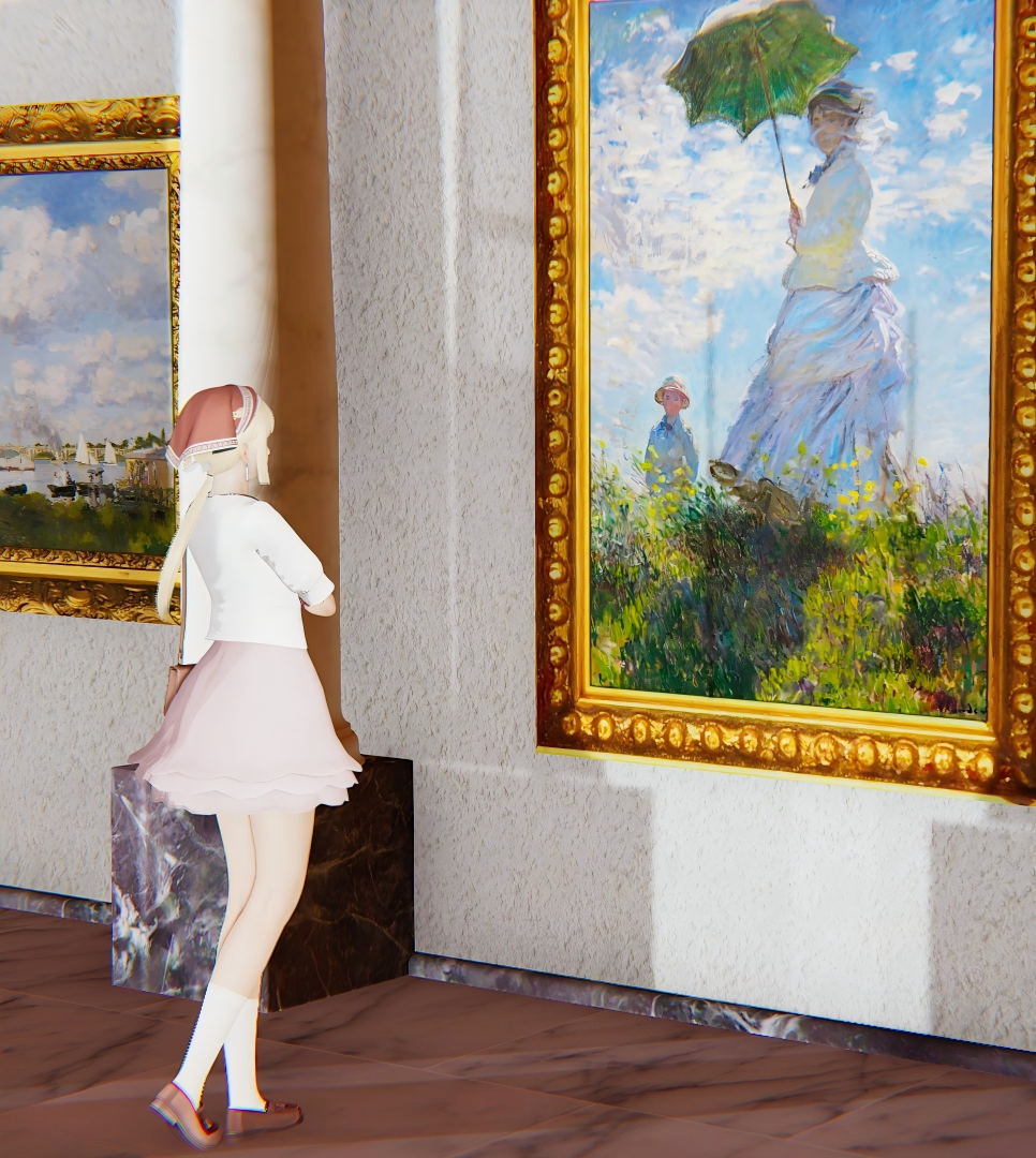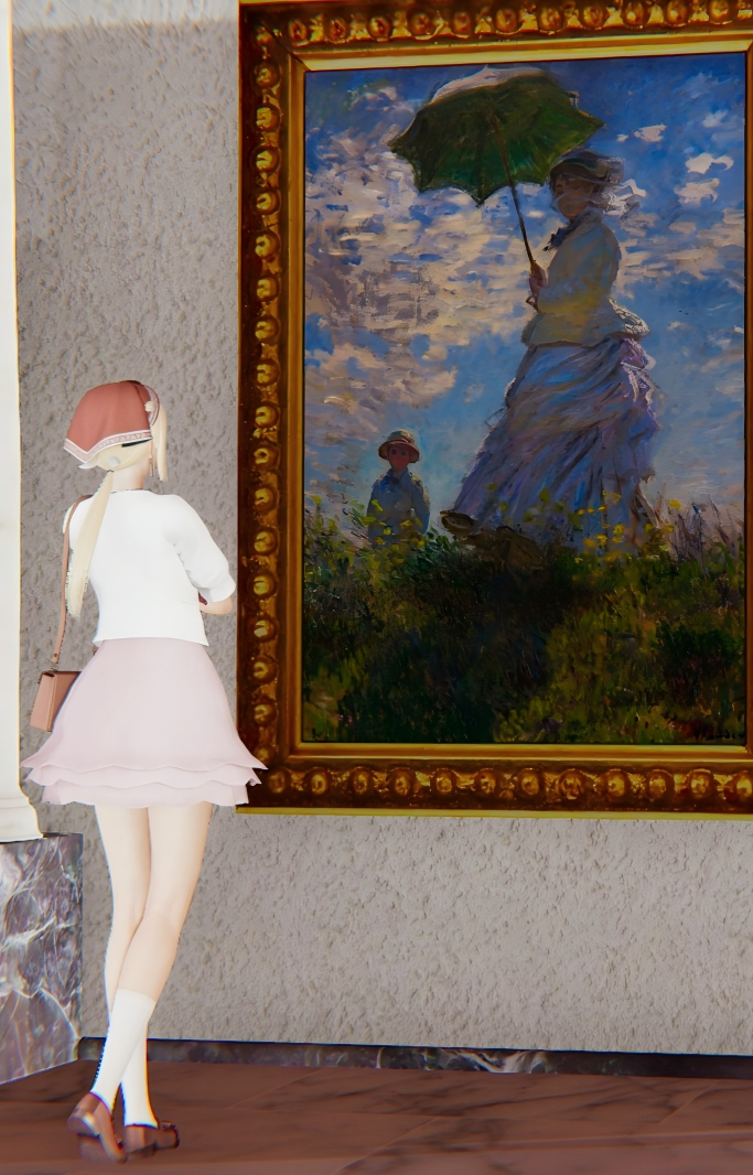 最后芙兰用蹩脚的工作室技术拍了几张「写真」,这么法系的装扮一定要看莫奈的画啦~「她在看画,而我在看她」