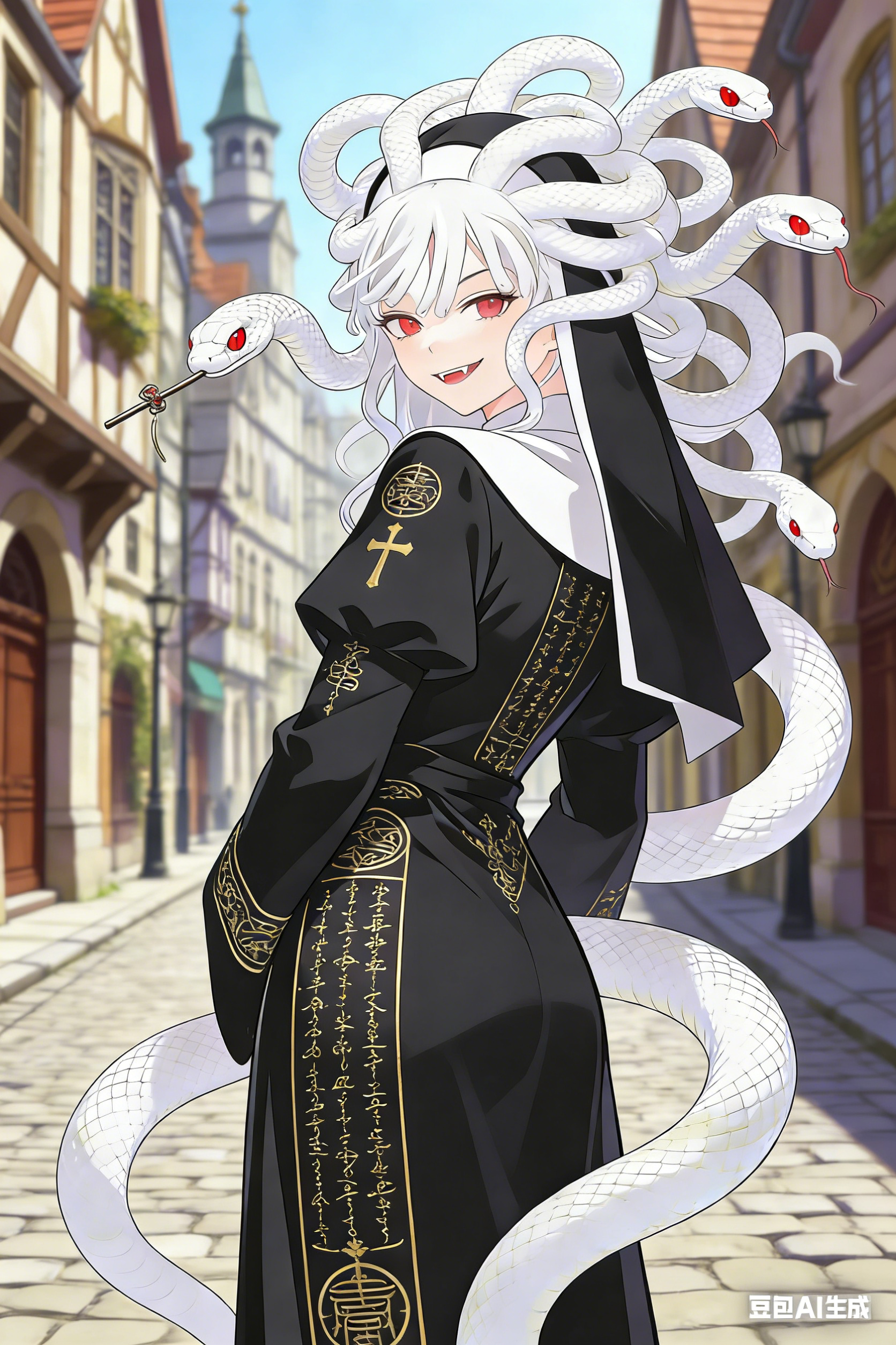 申春拍拍手,一撩蛇发,轻轻起身,先后向着自己的主人、姐妹和勇者一行人微微欠身,行了个简单的礼:「勇者团的英雄们,请容本人,申春,曾用名为美杜莎的大罪之人为各位解开误会~」