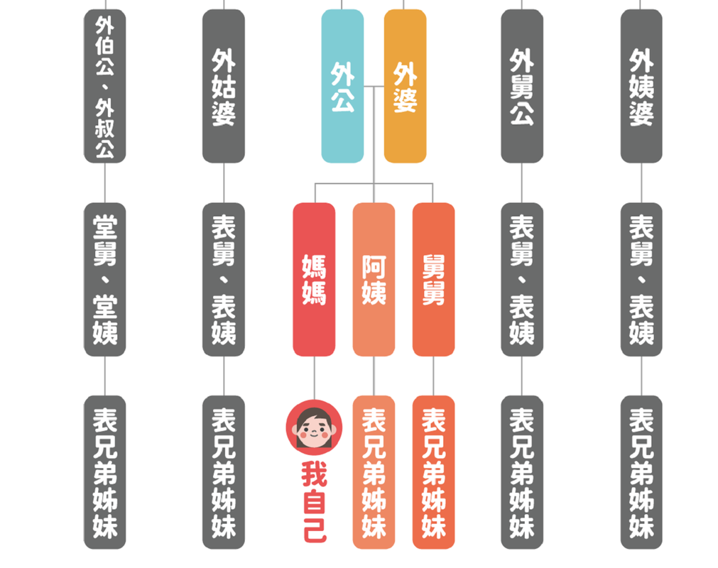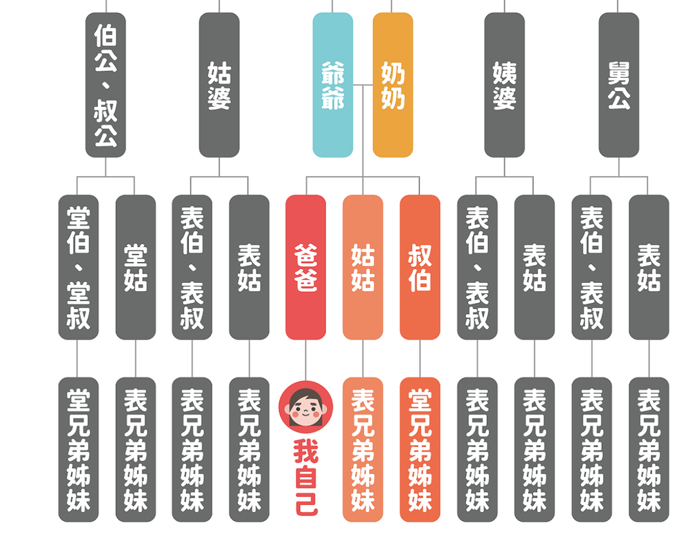 叔叔的老婆:「嬸嬸、嬸姆、叔母」。