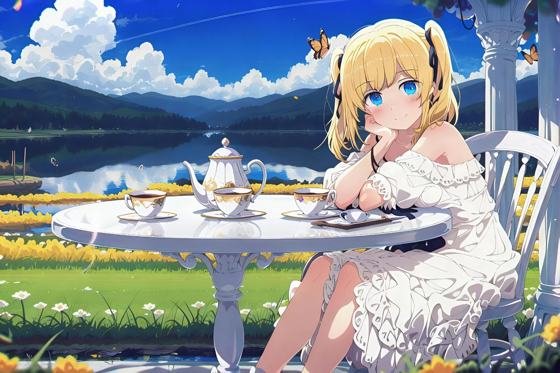 不论叫什么名字,这里永远美丽,永远纯真。这里树影婆娑,花香四溢,天空永远湛蓝,空气中漂浮着透明蝴蝶,湖水里倒映着那不会消散的星空。我甚至为她设计了八种笑法,从「略带傲气的小胜利笑」到「恶作剧成功后的坏笑」。