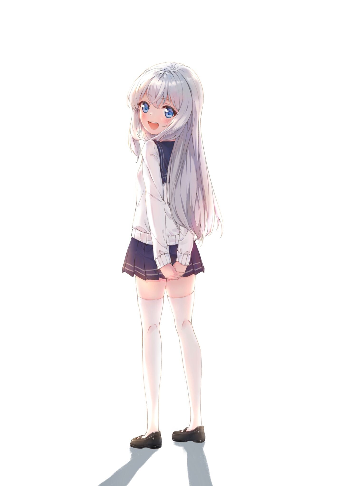 率先映入眼帘的,是她那银白色的长发,不知道是不是因为正在做饭,她的水手服外穿着粉色的围裙。