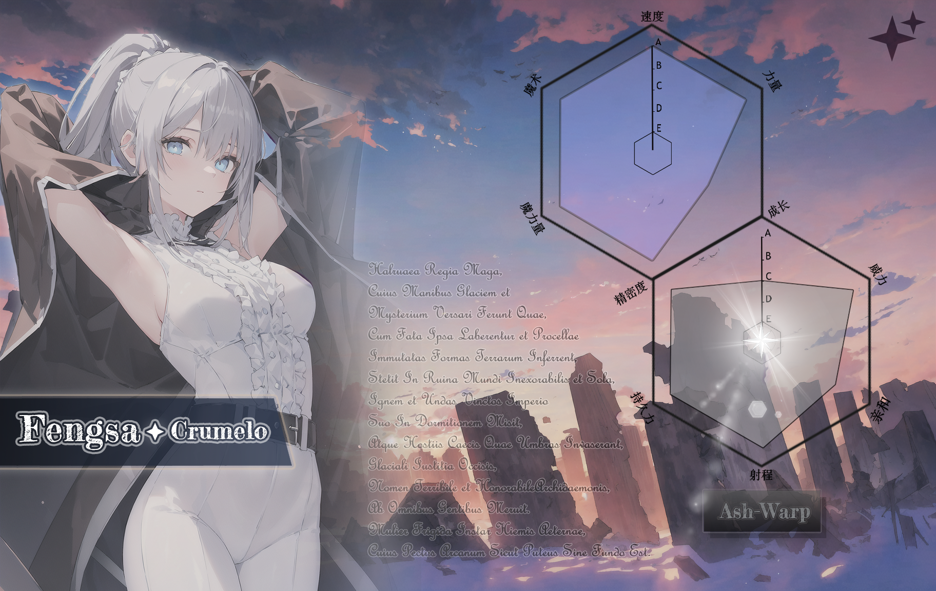 哈露瓦皇家魔术师,在『异变』发生之际,救世界于水火,被授予『魔王』之称。能够使役暗素的同时,还拥有“独”属于自己的异能,是一位谜团重重的冰冷系女子。