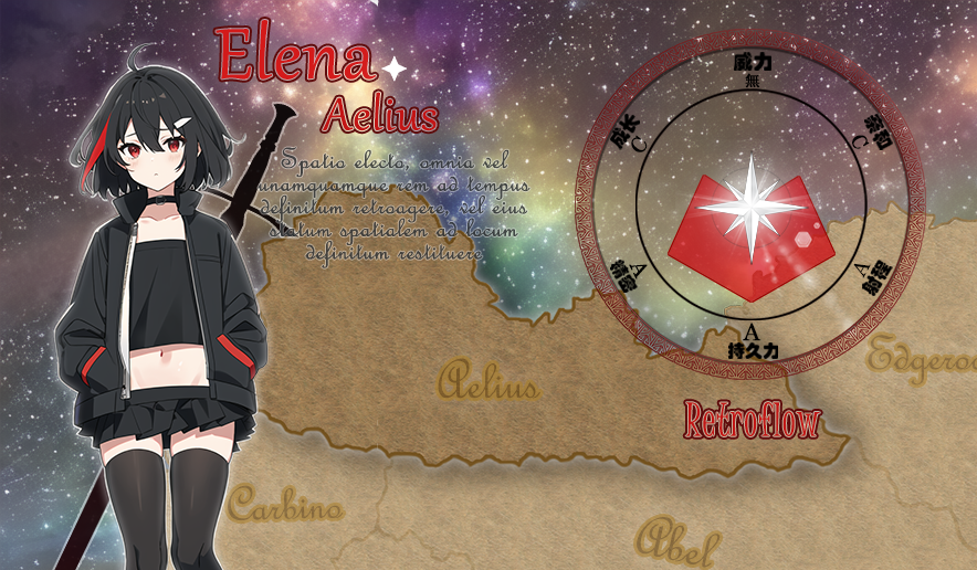 将选定空间内所有事物或单一事物的时间倒流到设定的时间点或空间状态恢复到设定的空间点。(射出去的箭矢撞到石头断裂,只倒流时间断箭会回到起点,只倒流空间箭矢则会复原,但依旧在石头边上。缺点是必须要依靠肉眼来进行「设定」)