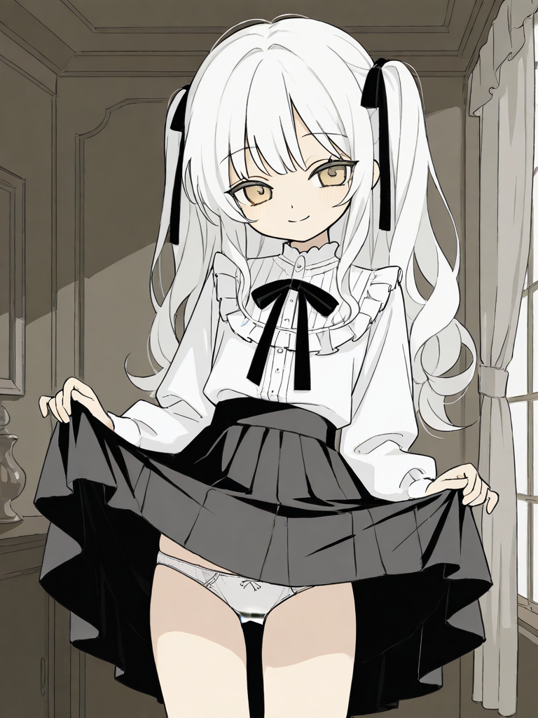 將裙子緩緩掀起,今天特別穿了可愛的款式。