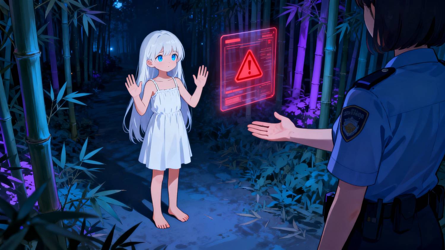 正當少女抬起頭,準備瞻仰一下藍月時,腦內介面突然閃爍起來,她還是第一次看到 AI 採用紅色字體。