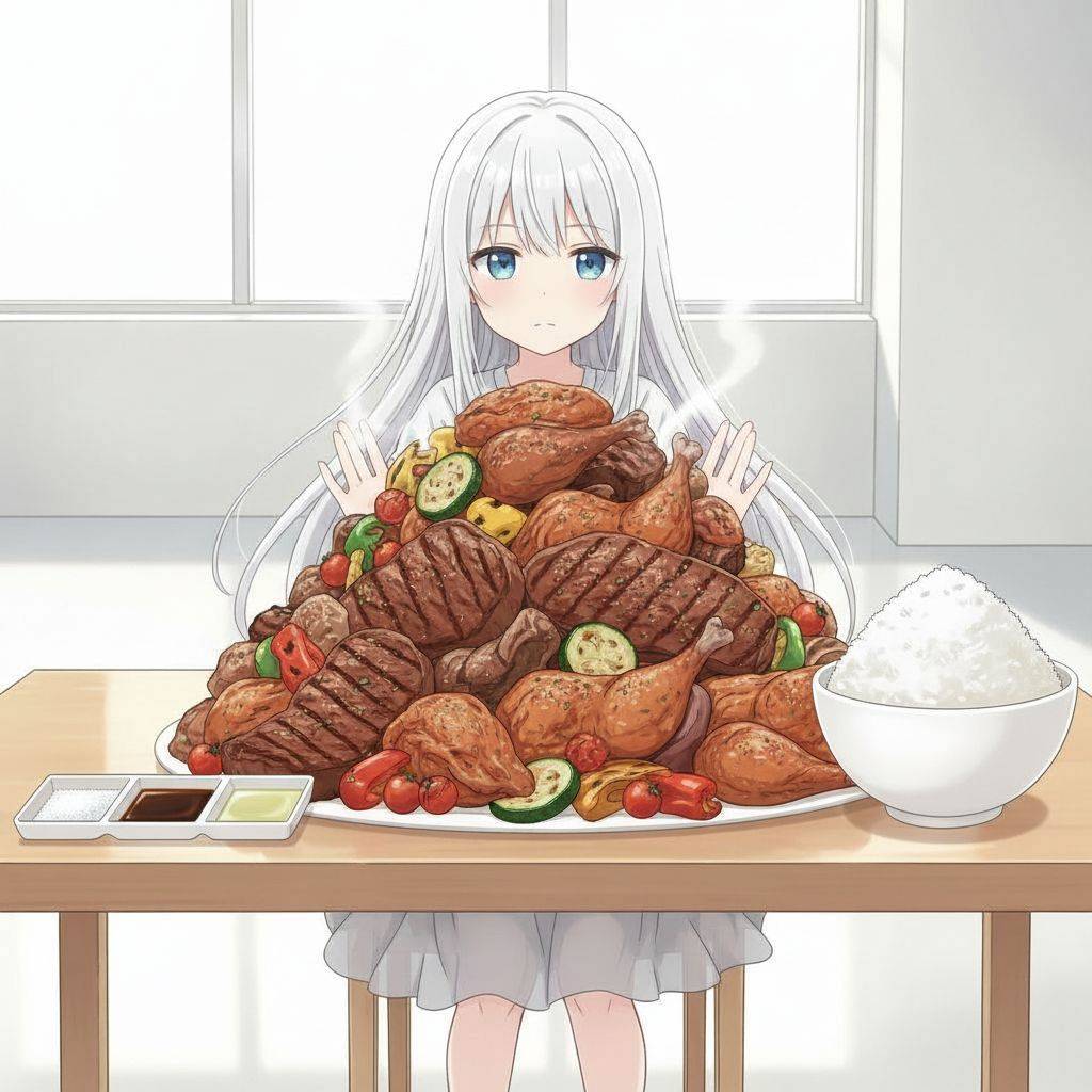 喝粥會搭配蒜片或檸檬汁嗎?裡世界的風俗真特別啊……正當柯拉這麼想的時候,隨著少女手指輕點,晶瑩的白飯開始填滿大碗,直到形成一座白色的小山。