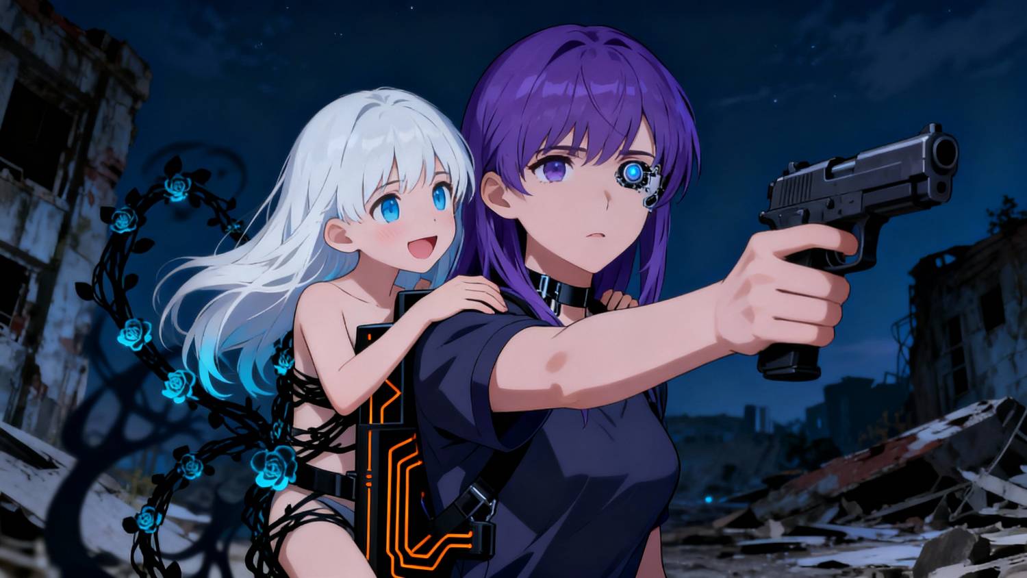 米卡如同剛才那般,自然地從身後扶住維塔的腰部,並從她的腋下探出小腦袋:「解決了嗎?」