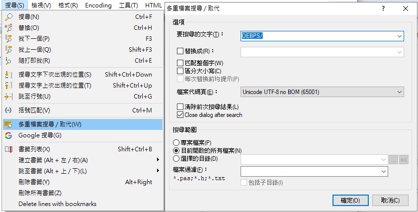 多重檔案搜尋/取代