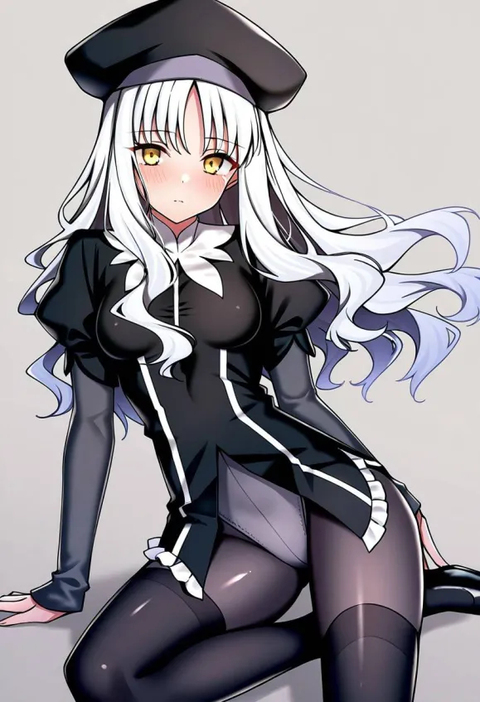 随着一阵鞋子的踏步声,没过多久,在小路的前方,就有一名身穿着黑色修女衣,打着哈欠,有着洁白头发的女子出现在了紧张的少女面前