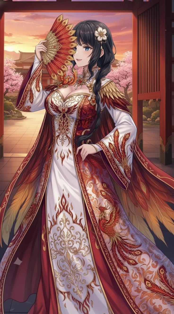 袖襬繡朱雀羽。