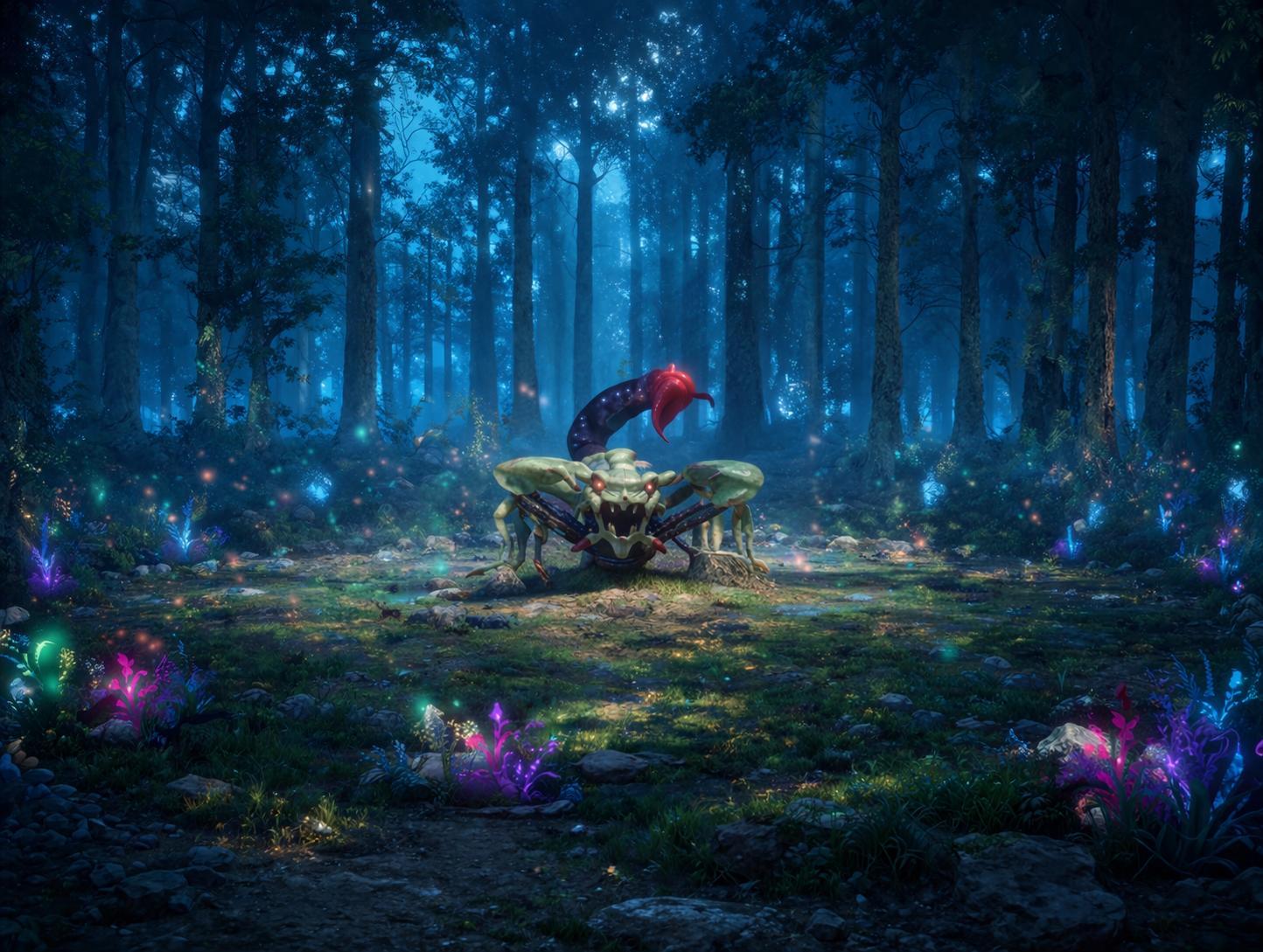 (AI改圖 將世界樹的F.O.E 放進 森林的背景圖 中)