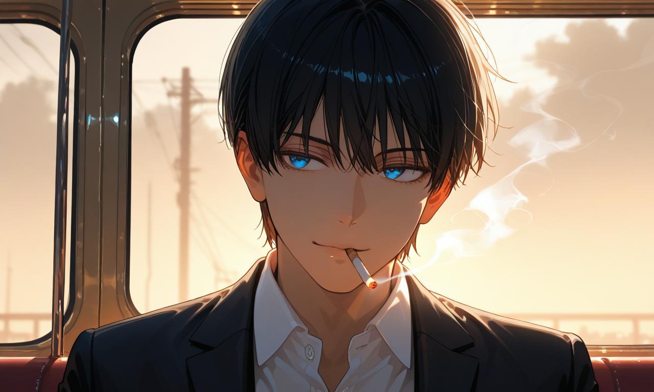 他不耐煩的抖著腳,將手伸入褲子口袋,下意識地摸出打火機與菸盒。正準備拿出時,他迅速地意識到目前人仍在電車上,只好緩緩收回。