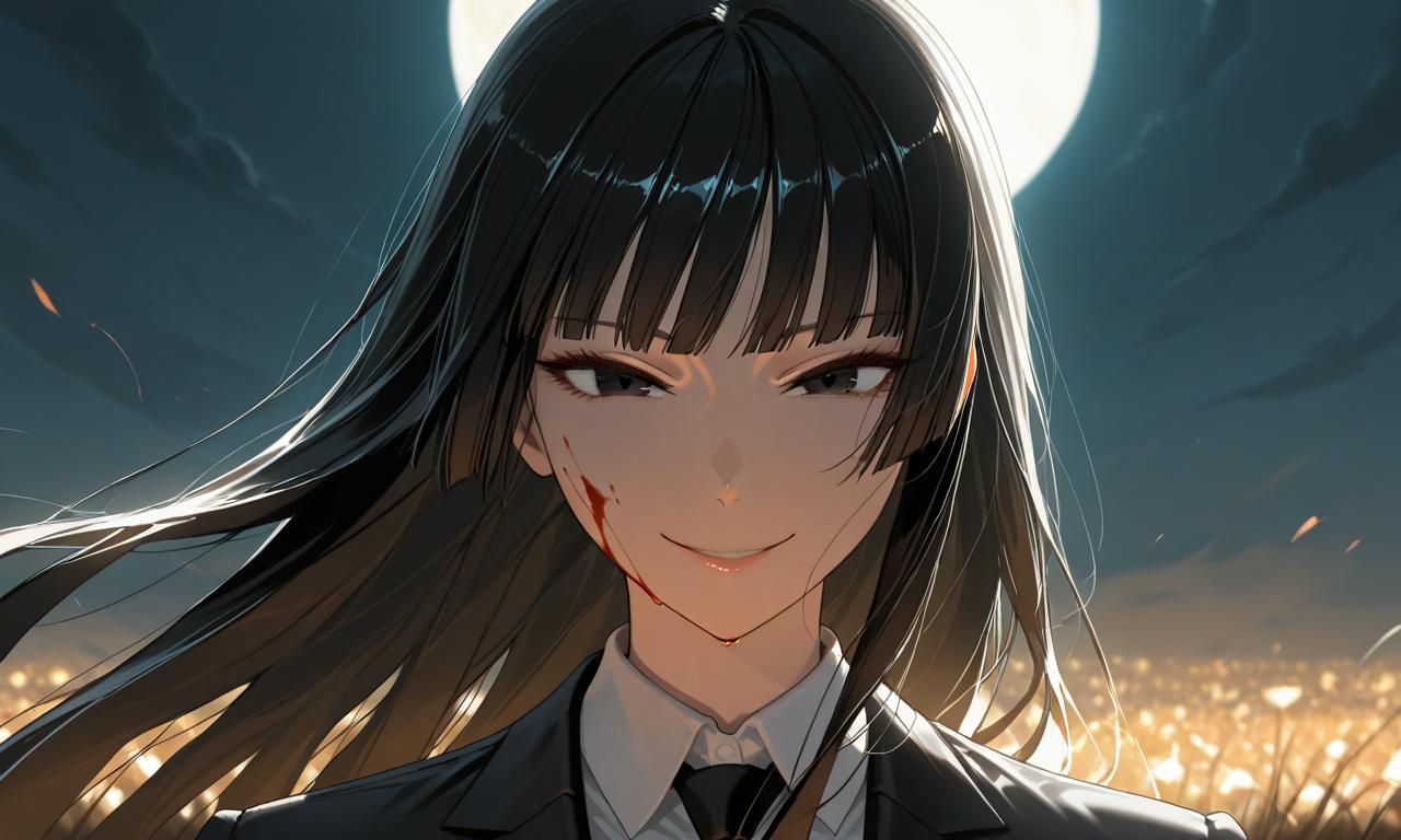 夜風從側面掠過她的臉,輕撫著黑色髮絲,鮮血從臉頰滑下,眼神也變得清亮。
