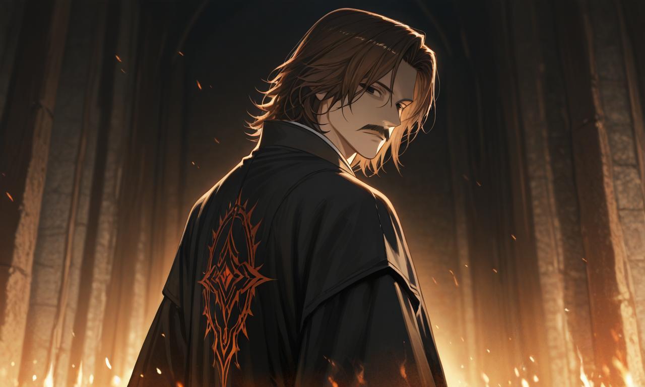 凪放慢腳步,抬眼看向那人,火光在他髮梢跳動。